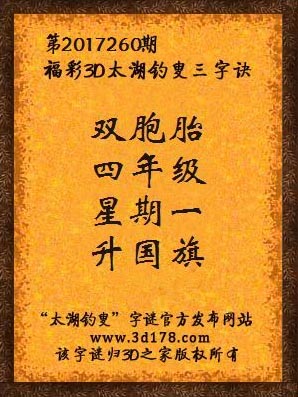 福彩第2017260期3d太湖字谜:双胞胎,四年级,星期一,升国旗