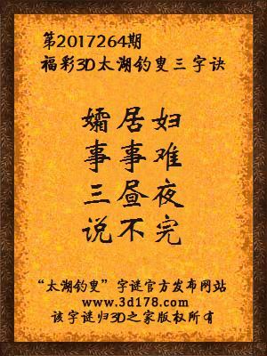 3d第2017264期马后炮解太湖字谜之孀居妇