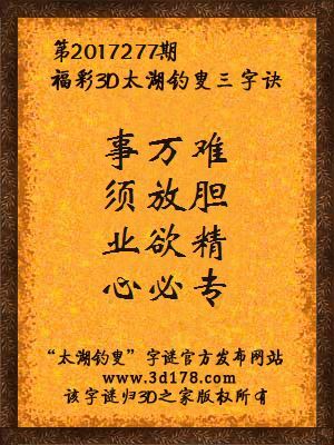 马前屁解太湖钓叟字谜第2017277期:事万难,须放胆
