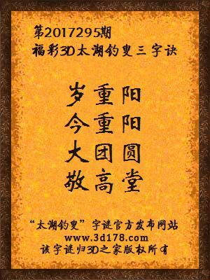福彩第2017295期3d太湖字谜:岁重阳,今重阳,大团圆,敬高堂