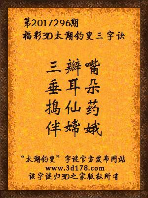 第2017296期福彩3d太湖钓叟三字诀