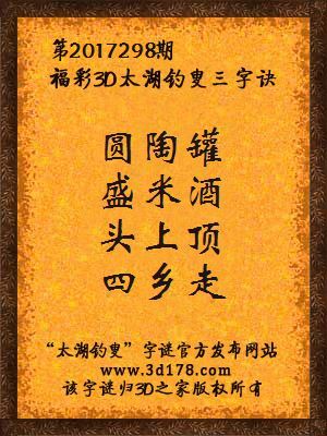 今日3d太湖字谜总汇,3d之家为您详细解答2017298期3d太湖字谜,并汇总多位专家精解太湖字谜供参考。