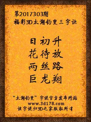 福彩第2017303期3d太湖字谜:日初升,花待放,两丝路,巨龙翔
