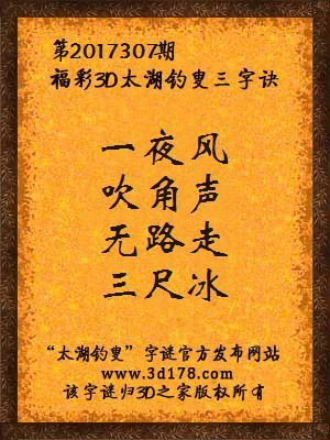 3d第2017307期众生缘解太湖字谜:一夜寒风