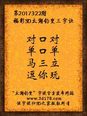 福彩第2017322期3d太湖字谜:对口对,单口单,马三立,逗你玩