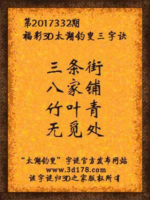下面开始解3d第2017332期太湖字谜: