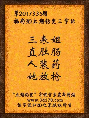 今日3d太湖字谜总汇,3d之家为您详细解答2017335期3d太湖字谜,并汇总多位专家精解太湖字谜供参考。