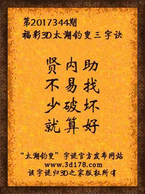 下面开始解3d第2017344期太湖字谜:贤内助,不易找,少破坏,就算好