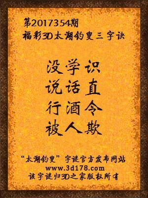 解3d第2017354期太湖字谜: