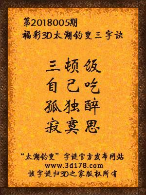 解3d第2018005期太湖字谜: