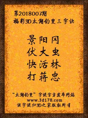 下面开始解3d第2018007期太湖字谜:景阳冈,伏大虫,快活林,打蒋忠