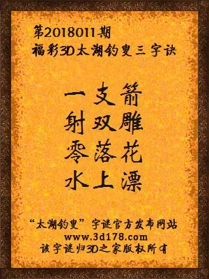 今日3d太湖字谜总汇,3d之家为您详细解答2018011期3d太湖字谜,并汇总多位专家精解太湖字谜供参考。