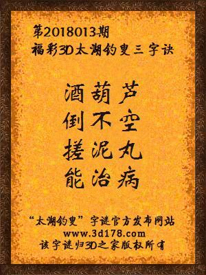 福彩第2018013期3d太湖字谜:酒葫芦,倒不空,搓泥丸,能治病