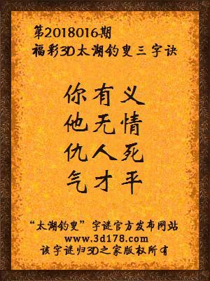 今日3d太湖字谜总汇,3d之家为您详细解答2018016期3d太湖字谜,并汇总多位专家精解太湖字谜供参考。