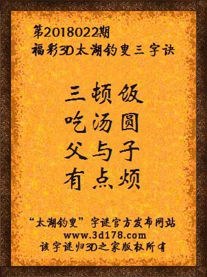 3d第2018022期马后炮解太湖字谜之三顿饭
