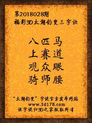 福彩第2018028期3d太湖字谜:八匹马,上赛道,观众眼,骑师腰