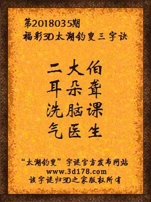 下面开始解3d第2018035期太湖字谜:二大伯,耳朵聋,洗脑课,气医生