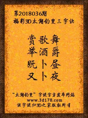 解3d第2018036期太湖字谜: