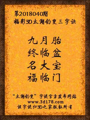 3d第2018040期马后炮解太湖字谜之九月胎