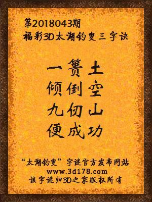 福彩第2018043期3d太湖字谜:一篑土,倾倒空,九仞山,便成功