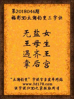 第2018046期福彩3d太湖钓叟三字诀