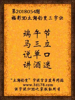 福彩第2018054期3d太湖字谜:端午节,马三立,说单口,讲酒迷