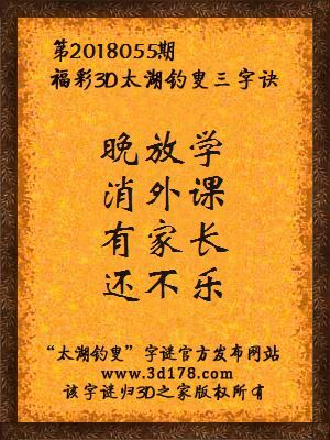 福彩第2018055期3d太湖字谜:晚放学,消外课,有家长,还不乐