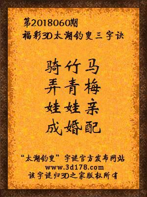3d第2018060期马后炮解太湖字谜之骑竹马