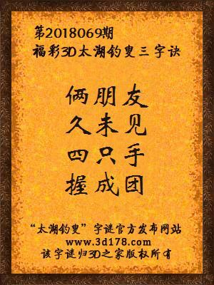 下面开始解3d第2018069期太湖字谜: