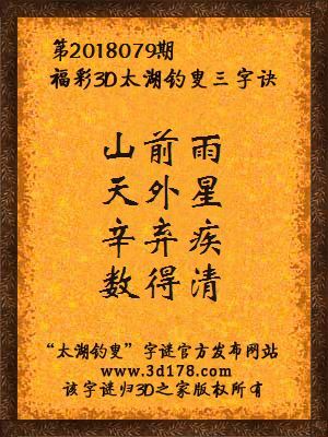 今日3d太湖字谜总汇,3d之家为您详细解答2018079期3d太湖字谜,并汇总多位专家精解太湖字谜供参考。