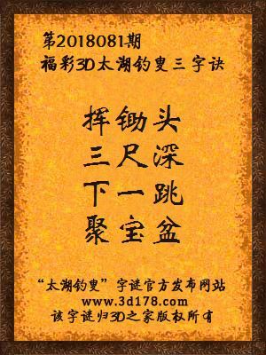 福彩第2018081期3d太湖字谜:挥锄头,三尺深,下一跳,聚宝盆