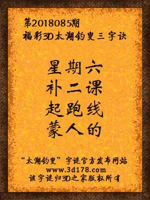 福彩第2018085期3d太湖字谜:星期六,补二课,起跑线,蒙人的