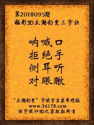 福彩第2018095期3d太湖字谜:呐喊口,拒绝手,侧耳听,对眼瞅
