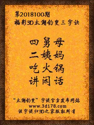 今日3d太湖字谜总汇,3d之家为您详细解答2018100期3d太湖字谜,并汇总多位专家精解太湖字谜供参考。