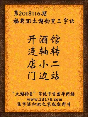 解3d第2018116期太湖字谜: