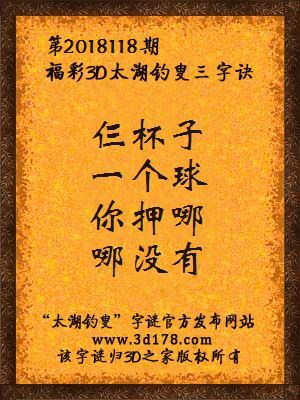 福彩第2018118期3d太湖字谜:仨杯子,一个球,你押哪,哪没有