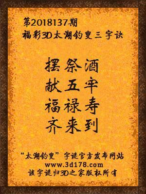 专家光芒万丈解3d第2018137期太湖钓叟三字