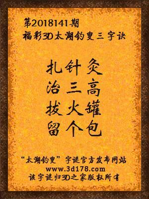 第2018141期专家只求奉献解3d字谜:火罐治三高