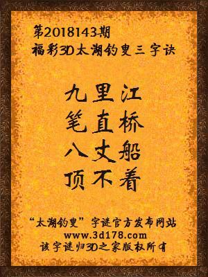 下面开始解3d第2018143期太湖字谜: