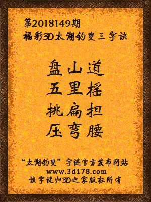 今日3d太湖字谜总汇,3d之家为您详细解答2018149期3d太湖字谜,并汇总多位专家精解太湖字谜供参考。