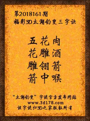 下面开始解3d第2018161期太湖字谜: