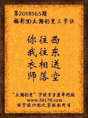 福彩第2018165期3d太湖字谜:你往西,我往东,衣相送,师落空