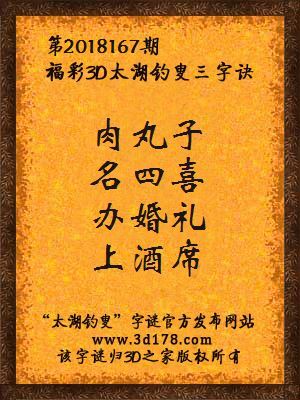 福彩第2018167期3d太湖字谜:肉丸子,名四喜,办婚礼,上酒席