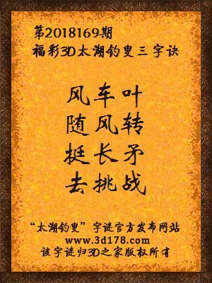 福彩第2018169期3d太湖字谜:风车叶,随风转,挺长矛,去挑战