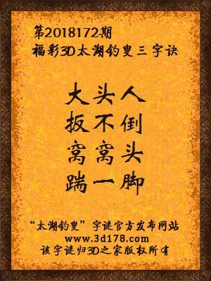 下面开始解3d第2018172期太湖字谜: