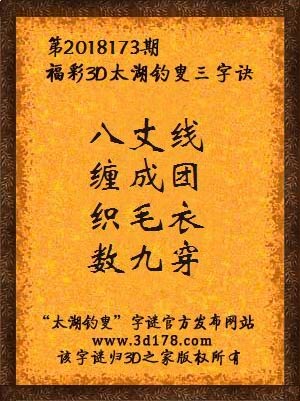 福彩第2018173期3d太湖字谜:八丈线,缠成团,织毛衣,数九穿