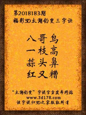 解3d第2018183期太湖字谜: