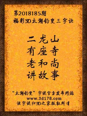 福彩第2018185期3d太湖字谜:二龙山,有座寺,老和尚,讲故事