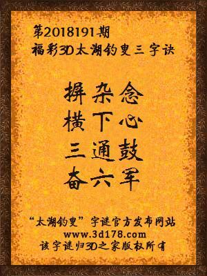 福彩3d第2018191期太湖钓叟三字诀