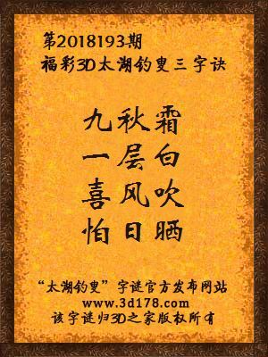 福彩3d第2018193期太湖钓叟三字诀
